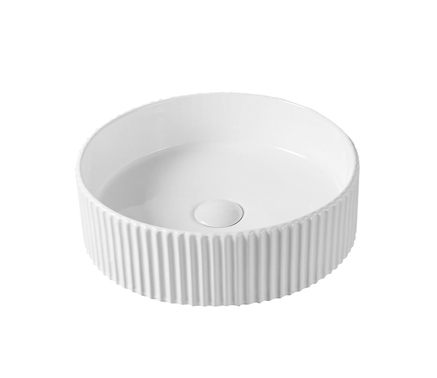 BACHA DE LOZA BLANCA REDONDA SUPERFICIE RAYADA – MEDIDAS 40CM*40CM*12,5CM